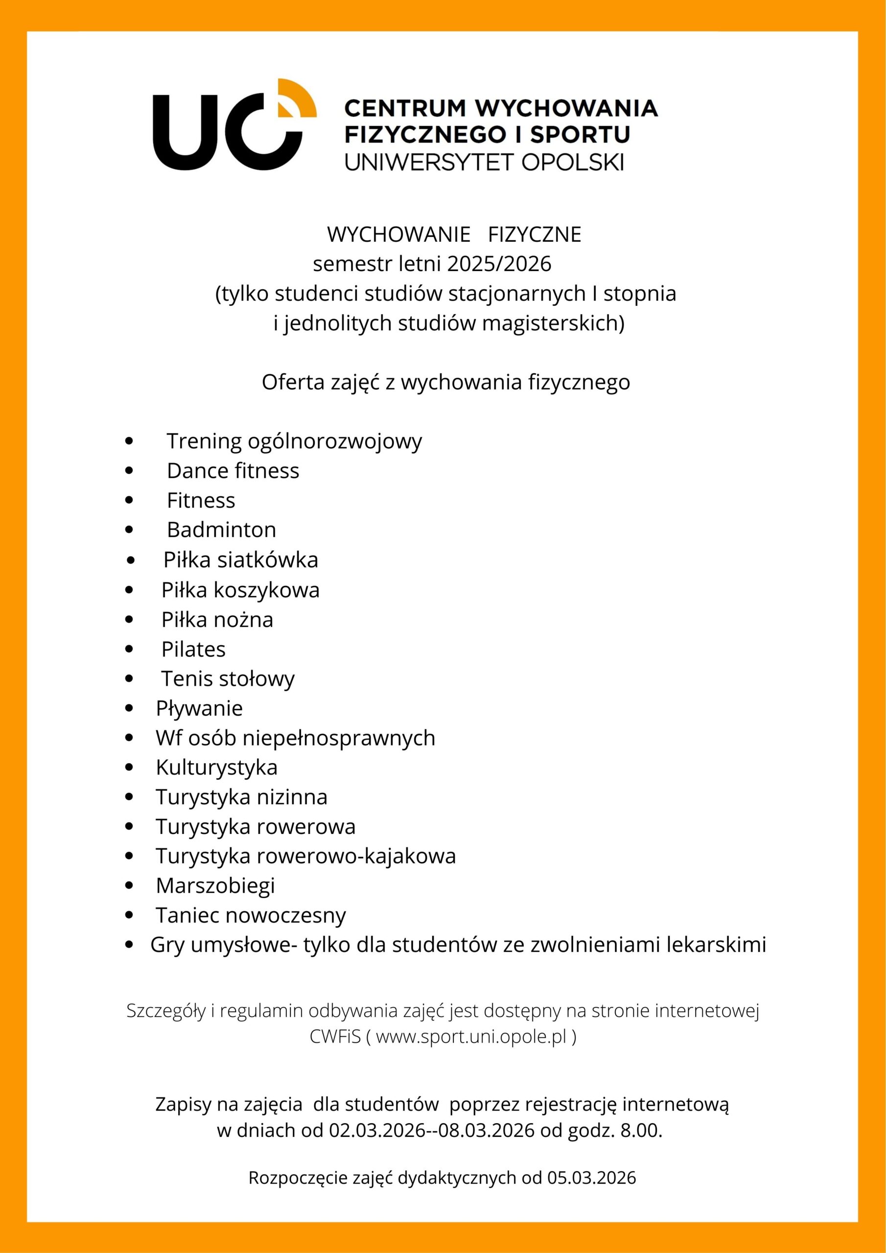 Rozpoczęcie zajęć dydaktycznych od 5.03.2026